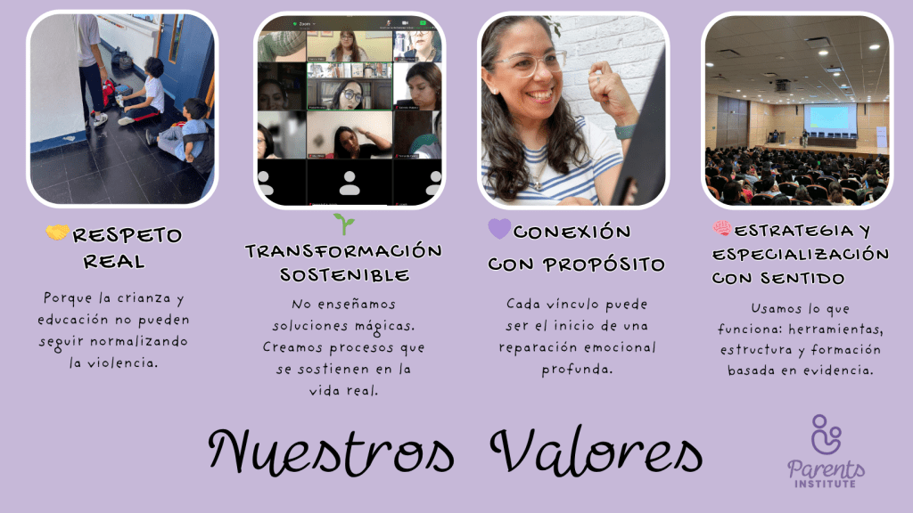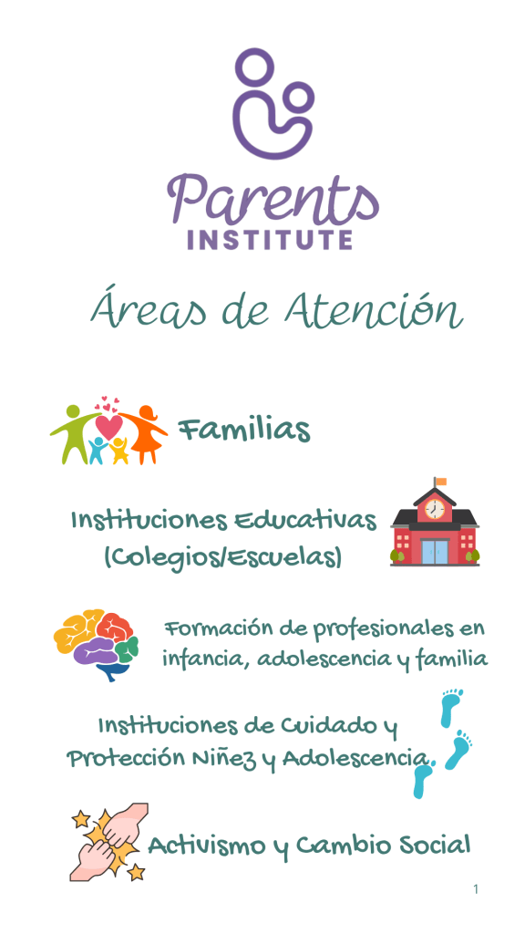 Pero el Parents Institute es mucho más grande que una sola persona. Es una comunidad profesional en constante innovación, comprometida con generar impacto real en cinco grandes áreas de acción: